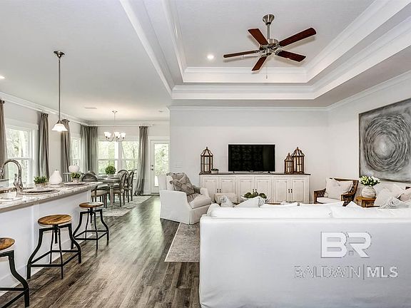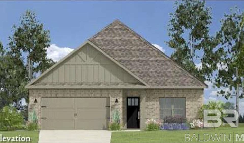 New Construction, Spacious 2117 sq. ft., 4 bedroom, 3 bath brick home. Great location, only minutes from shopping, dining, entertainment and Alabama's beautiful sugar sand beaches. Features include: 9' ceilings throughout, tray ceilings finished with crown molding and ceiling fans in the Great Room and Master Bedroom. Quartz counters in kitchen and baths. Kitchen features a large island with counter height breakfast bar & pendant lights, stainless steel appliances, beautiful painted cabinets and gas range. Glamour master bathroom has a tile shower with frameless glass enclosure, drop-in tub with tile surround, double vanity and a large walk-in closet. Also has covered front & back porches and an extended 2-Car + golf cart parking garage. This home is being constructed to the Gold Fortified standard, with Craftsman style trim package inside and out and decorative landscape package with fully sodded yard (where cleared) plus irrigation. Photos are representative samples from a similar home. Finishes, options, and colors may differ from photos. Disclaimer: All information provided is deemed reliable, but is not guaranteed and should be independently verified. Buyer to verify all information during due diligence.