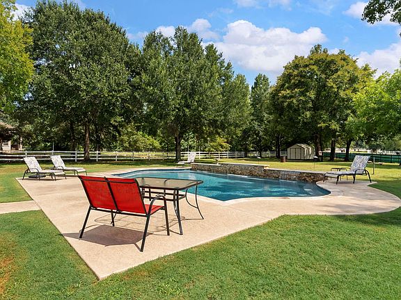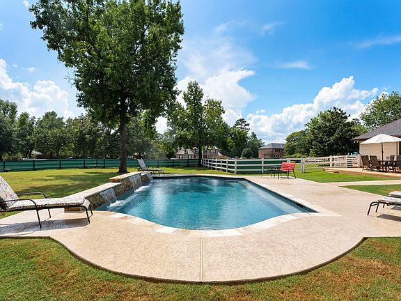 Experience luxury and privacy on this stunning 1.5-acre corner lot in the prestigious Grand Lake Estates community. This beautifully updated home blends rustic elegance with modern upgrades. Featuring a sparkling, heated pool with waterfall—all easily managed from your phone—and an extended patio for year-round outdoor enjoyment. Inside, the remodeled kitchen boasts leathered granite countertops, a glass backsplash, double oven, and gas cooktop. Spacious primary suite offers a sitting area for ultimate relaxation while primary bath boasts double sinks, walk-in shower, jetted tub, and walk-in closet. 3 additional bedrooms are also well-appointed. Engineered wood flooring and tile throughout this home make for a gorgeous look and easy cleaning. Backyard has plenty of room to spread out with cross fencing, storage shed, and trees for shade. Additional upgrades include whole house generator, fresh paint, wood blinds and more. Come see what this home has to offer!