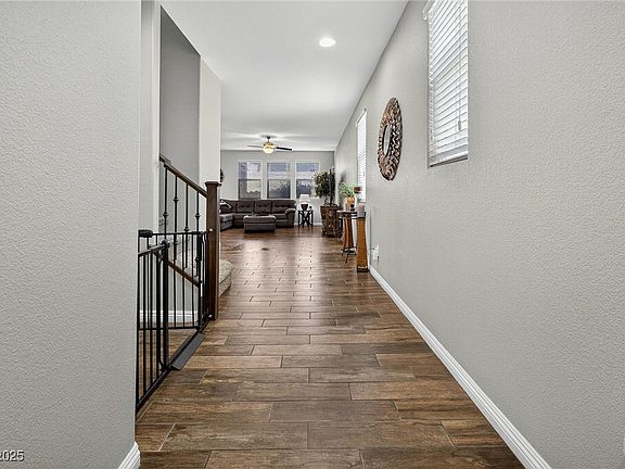 Welcome to your dream home in SW Las Vegas! Positioned on a prominent corner lot, this residence offers privacy & convenience. Step inside to discover upgraded wood-look tile floors & an open gourmet kitchen featuring SS appliances, large island with gleaming granite counters, with a mosaic backsplash. The expansive primary bedroom is a true retreat, while the versatile loft offers additional living space upstairs. A spacious bedroom on the main floor provides flexibility for guests or a home office. Enjoy peace of mind with a newer washer & dryer. Conveniently located near shopping & highway access, making your daily errands a breeze. This aggressively priced gem is the perfect combination of style, comfort, & location.
