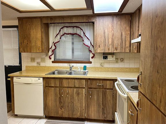55+ Community, located on corner lot, walking distance to community pool 2, Home features two bedroom that have ceiling fans. Master has walk-in closet and bathroom that has tub. Guest bathroom has walk-in shower. Home has two screen rooms, one by carport leads to laundry room and has plenty storage to hold outside tools. Other has vinyl sliding windows. HVAC 2008. reroof 1999 paperwork states 25 yr life.