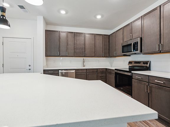 Two-Bedroom Apartment Home with Luxury Vinyl Plank Flooring, Eat-In Island Kitchens with Pendant Lighting, Quartz Countertops in Kitchens & Baths, Stainless Steel Appliance Package, Subway Tile Kitchen Backsplash, Single, Deep Undermount Kitchen Sink, Gooseneck Kitchen Faucet with Pulldown Sprayer, 42-Inch Custom Cabinetry, Stand-Alone Shower with Glass Door*, Vanities with Double Sinks*, Soaker Tub with Tile Surround*, Curved Shower Rods, Linen Cabinets, Ceiling Fan in Living Area, Oversized Closets, In-Home Washer & Dryer, Private Patio/Balcony*, High Speed Internet Connectivity, 2-Inch Blinds * Available in Select Apartment Homes