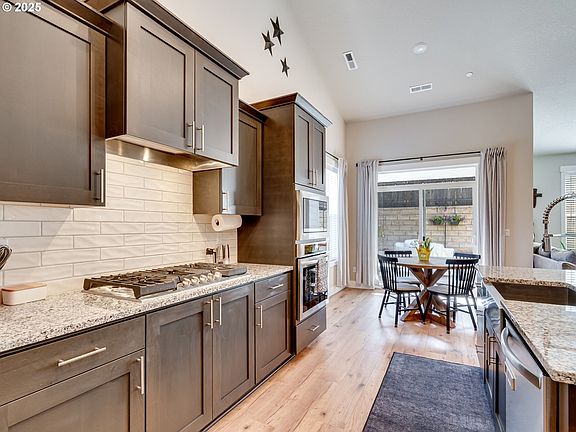 Perched atop the desirable Green Mountain neighborhood, this stunning home offers the perfect blend of convenience, comfort, and tranquility. Located in the highly sought-after Camas School District, you'll enjoy access to a neighborhood pool, park, and scenic walking trails—all just moments from your front door.Step inside to discover a thoughtfully designed layout with an amazing kitchen at the heart of the home—a large, welcoming space perfect for gathering, cooking, and creating memories. Featuring quartz countertops, a gas cooktop, stainless steel appliances, and a deep farmhouse sink, it’s both stylish and functional for everyday living and entertaining.The main-level primary suite is your personal retreat, complete with a spacious walk-in closet, walk-in shower, double vanity, separate soaking tub, and its own cozy retreat. A second main-level bedroom and full bath offer flexibility for an in-law suite, guest room, office, or reading room.Step outside into a peaceful backyard sanctuary, surrounded by maturing trees that provide complete privacy, an extended patio, and beautiful territorial views—perfect for relaxing evenings or weekend gatherings.Built just two years ago, this home is truly move-in ready—why wait for new construction? Additional features include 16-foot vaulted ceilings, a 6-zone sprinkler system, large shed, and an insulated, finished 2-car tandem garage. Great for extra storage. The dedicated laundry room is thoughtfully placed with a linen and storage closet just across the hallway.Upstairs, you’ll find two generously sized bedrooms with ample closet space and another full bathroom with a tub/shower combo.This home checks every box—modern finishes, smart layout, community amenities, and a prime Camas location. Don’t miss your chance to make it yours!