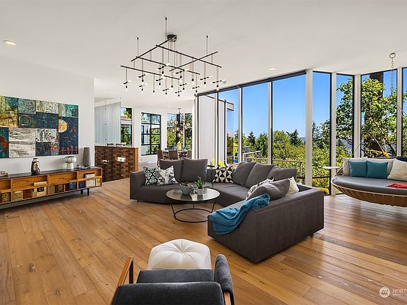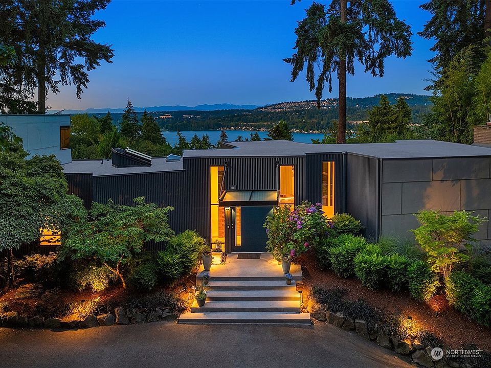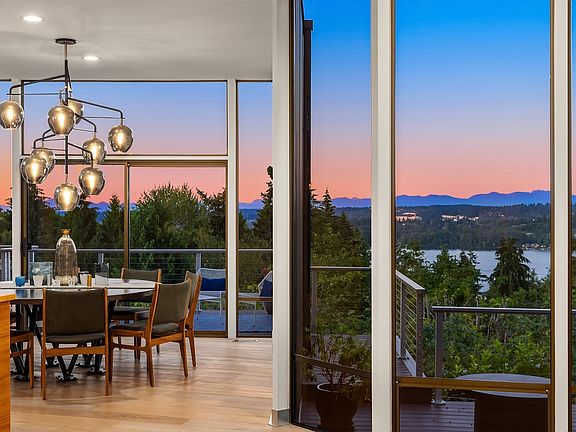 Parkwood Modern View Stunner. LA hip vibe meets Mercer Island. Brilliant, panoramic lake & mtn views. Featured in Portrait Magazine: top of the line, curated finishes create a swoon-worthy aesthetic. Custom & cool - no cookie cutter here! Walls of windows & open living spaces lead out to an expansive entertaining deck. Center-stage gourmet kitchen w/ high-end appliances & cabinetry, baking station, walk-in pantry. Exceptional features: wide plank oak floors, custom walnut finishes, TruStile doors, thoughtful built-ins & designer lighting. All 5 BDRs up incl. luxe primary suite w/ fireplace, dream 5-pc bath & walk-in closet. Ideal setting down a serene, private lane in one of MI’s most sought-after neighborhoods. Hurry - this one is special!