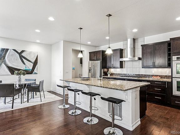 This is the best value in Central Park. Rare Infinity Homes floor plan with tons of finished square footage for this price. Open and spacious main level with great room, dining room, kitchen and casual dining open to create a large entertaining/living space. Indoor/outdoor flow with double sliding doors opening from the dining room to the covered front porch and the great room opening to the rear patio with hot tub in the fenced and private back yard. Dramatic, light filled entry with 3-story, open staircase with horizontal metal railings. Main floor study or 6th bedroom with adjacent 3/4 bath is tucked privately away from the entry and is the perfect spot for the work at home professional and offers views of 35th Avenue Parkway. Mocha color wide plank wood floors throughout the main level, new white paint throughout for a light and fresh feel. Mocha cabinetry in the kitchen, stainless appliances and slab granite counters. The second floor hosts 4 bedrooms including the luxurious primary suite with bedroom overlooking the back yard, dual walk-in closets and a 5 piece bath with dual vanities, oversized shower and soaking tub. The lower level is made for entertaining with a large family/rec room area plus a home theater space, 5th bedroom and additional bath with steam shower. This location is superb, you are only two blocks to the neighborhood swimming pool and two blocks to Central Park, and a short walk to the best retail and restaurants in all of Central Park. Neighborhood schools are nearby and you have easy access to light rail and I-70 and I-225 making downtown Denver only a short drive away. This home is in move-in ready condition. Relax and enjoy summer in your new home!