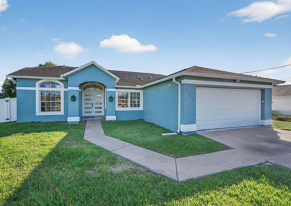 Welcome to 9168 Geneva Street. No part of this house has been spared. Walk through the brand new hurricane rated double doors into the open floor plan with split bedrooms. You will first be greeted by the modern open kitchen remodeled in 2025 with beautiful granite countertops. Enjoy cooking in the kitchen with the extra large island with plenty of room for friends and family to sit around. The primary bedroom boasts a 36 inch door with new paint throughout with a large primary bathroom including double sinks, large shower with two rain style shower heads, and a smart technology toilet. Across the house are two well appointed bedrooms with closet made organized closets and a remodeled bathroom including walk in shower and a smart technology toilet. Outside is a large screened in porch with a brand new 2025 pool and heated spa. The front and back yard is adorned with new sod. Also included is the oversized 10X20 shed for extra storage or a large workshop. Roof 2015; AC 2022; electric 2025; plumbing 2025; hurricane windows and doors 2025.
