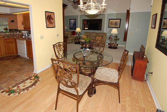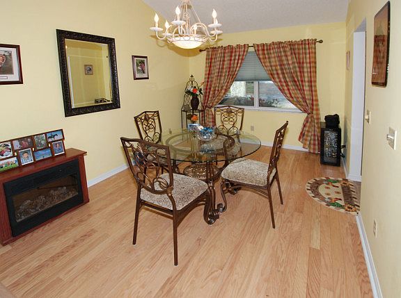 Nestled on a tree lined corner lot. Located in popular 55+ gated community. Open living and dining room, plus extended living flex space with lots of windows for natural light and views of the backyard. Kitchen features an abundance of cabinets, durable Quartz counter tops, cafe area for morning or casual dining and pass through window. Split bedroom plan. Master retreat with spacious bath featuring double sink vanity, walk in shower, linen and clothes closet. Secluded 2nd Bedroom or Den with unique desk that's double is a Murphy bed. Guest bath with tub/shower. Convenient inside laundry room with storage cabinets includes the 2014 washer and dryer. Large closet in foyer. Recent updates include 2015 HVAC, 2013 Roof, 2007 Water Purification system. The long list of the homeowners amenities include lawn mowing so you have more time to relax and enjoy all the activities. Community access to two shopping centers and convenient to many restaurants, medical and all other needs.