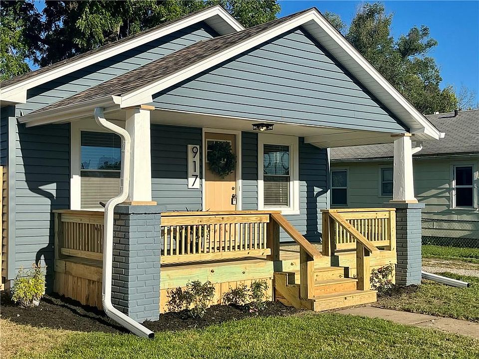 Newly remodeled 2 bedroom 1 bath with spacious open living area, shiplap, wood accents, kitchen with all of the upgrades, separate laundry room, extra storage and so much NEW! NEW roof, guttering, siding, windows, doors, energy efficient HVAC, water heater, and all of the interior finishes! Kitchen features high quality wood cabinets with soft close features, a farmhouse sink with garbage disposal, quartz countertops, a breakfast bar and new GE appliances that stay with the home. The bathroom is large and has a lot of extra storage. Laundry/mud roof off the back entrance. The large front porch and privacy fenced back yard offer tons of entertaining space. The driveway is deep to allow for extra parking and there’s even a storage shed out back for additional items. All of the window coverings stay. This home is turn key and ready to move right in! Schedule your showing today.
