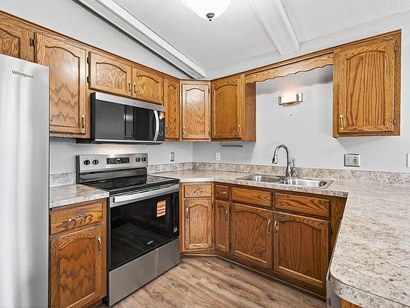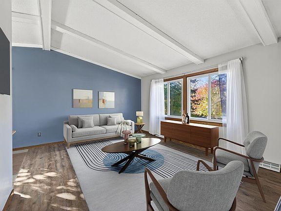 Welcome to 917 94th Ave NE, a beautifully maintained 2-bedroom, 2-bathroom townhouse in the heart of Blaine! Step inside to soaring vaulted ceilings with exposed beams in the living, dining, and kitchen areas, creating a bright and open feel filled with character. The kitchen features all brand new Whirlpool stainless steel appliances as of November 2025—including a microwave, refrigerator, stove, and dishwasher. The main level offers a warm and inviting layout, while the finished lower level features a cozy family room complete with a wet bar—perfect for entertaining or relaxing. Enjoy the convenience of a tuckunder 2-car garage and low-maintenance living, all just minutes from parks, shopping, restaurants, and easy highway access. This move-in ready gem blends comfort, charm, and functionality—come see it today!