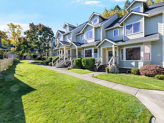 Gorgeous Ashland townhome with abundant natural light, forested tree views and balconies overlooking Clay Creek. Well-designed floor plan, the main floor has living room with hardwood oak floors and a gas fireplace, half bath, and the kitchen features breakfast bar, eating area and access to balcony overlooking the creek. Upstairs you'll find the laundry area and 2 primary suites with vaulted ceilings, main primary has its own balcony to enjoy the peaceful, open space. Lower level has a spacious 2 car garage and bonus space for home gym or office. New faucets and window treatments. Excellent location with proximity to trails, shopping, YMCA and just minutes from downtown. Association owns private green space with nature trails and tranquil sitting areas. HOA covers insurance, landscaping, and exterior maintenance; recently completed new roofs and exterior paint. Don't let this one slip away!