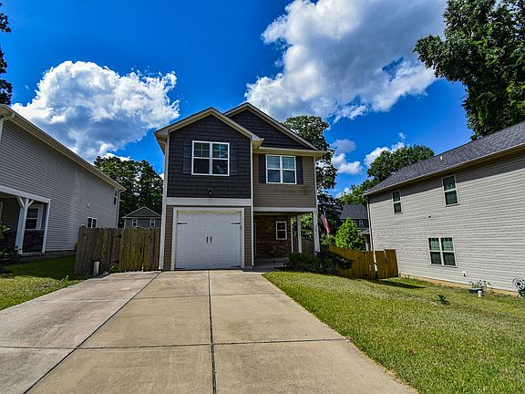 This three bedroom 3 bathroom home located in Haymount in Fayetteville, NC is a charmer! This home offers an open-concept downstairs area with a fully stocked kitchen and spacious living area. Off the living room, you will find your screened-in porch that leads to a fully fenced back yard and additional patio area. Upstairs are all three bedrooms, including the primary suite. Pets are okay
