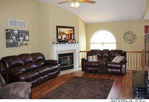 MOTIVATED SELLERS... BRING OFFER! Very nice 3BR/2BA ranch with finished basement. Open floor plan with great room featuring new flooring, vaulted ceilings, gas fireplace and lots of windows. Kitchen has large eat-in area, plenty of cabinets and countertops, breakfast bar and sliding doors to nice deck. Master Suite features walk-in closet & private bathroom. Two LARGE bedrooms and bathroom finish up the main floor. Finished lower level has a family room and has the potential for a third bath with roughed in plumbing. Backyard is a good size for all your family needs. Large storage room with 2 rows of shelving in the basement plus a workbench area. There is also another room that could be easily finished in and office. Call Kelly May at (618) 444-1950 for more information today!