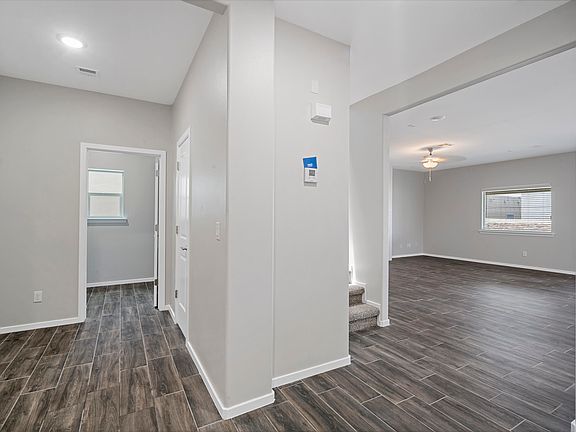 Glorious two story home with flex room just off the entrance. Downstairs you'll find a large laundry room and powder room. The large main living space is open to the dining area and kitchen. An electric fireplace in living room adds the final touch to the open space. The kitchen breakfast bar showcases beautiful granite countertops. Stainless steel appliances are included in this spacious kitchen, along with a walk-in pantry and tiled backsplash for beauty and easy cleanup. All bathrooms and the entire downstairs have tiled flooring. Bedrooms are located upstairs with a primary suite that's large enough for additional seating if desired, and access to a private balcony. Primary bath includes separate jetted tub, walk-in shower, dual vanity sink with framed mirrors and a super-sized walk-in closet. This home's back covered patio is ready for those backyard family gatherings. The double-car garage is insulated for additional savings on your utility bills. Water manabloc system included, with easy access in gara