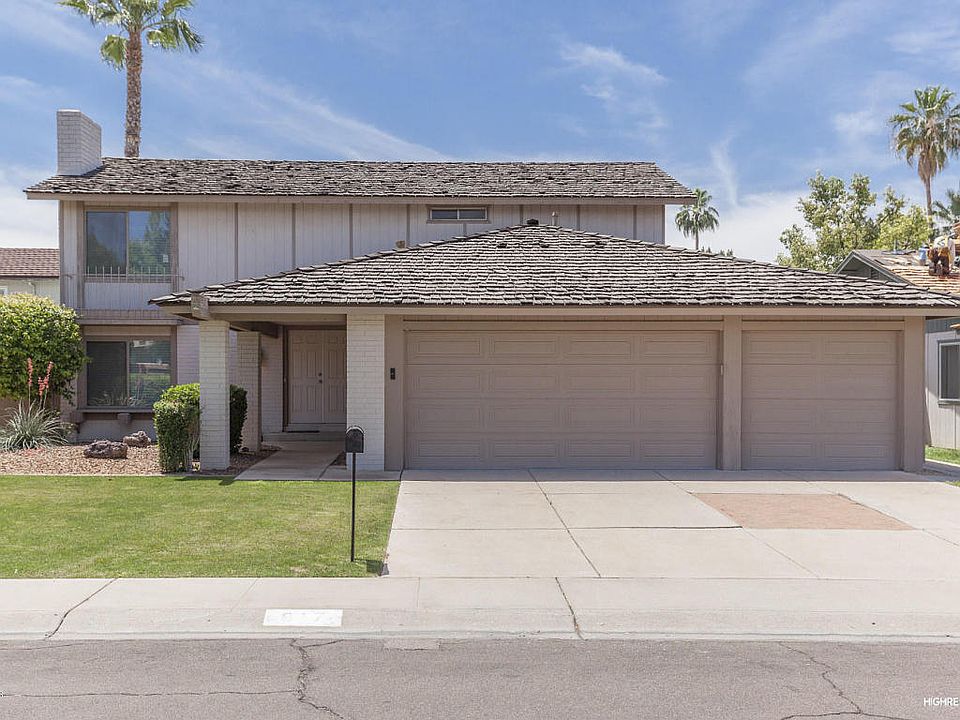 Great home in the coveted neighborhood of The Lakes! Tastefully updated with new carpet, fresh paint and new fixtures. 4 bedrooms, 2.5 bathrooms and a 3 car garage. Very clean house with plenty of room for a family. Kitchen has granite counter tops, subway tile backsplash and stainless steel appliances. Huge master suite includes a fireplace in the sitting area and two generous closets. Nice landscaping with a private pool and grass in the front and back. The Lakes community features a clubhouse, tennis, pools, playgrounds/parks, social events and more. www.thelakesoftempe.com