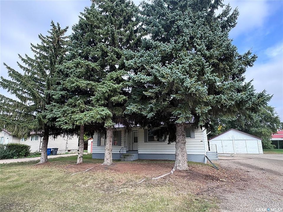 Charming Starter Home with Huge Potential Built in 1972, this 1,112 ft² bungalow is tucked behind a row of towering evergreens, offering privacy, character, and plenty of room to grow. Step inside to a bright, open-concept kitchen and dining area with well-kept cabinets, updated flooring, and large windows that fill the space with natural light. The main floor features 3 comfortable bedrooms and a full bath, each with generous windows overlooking the mature yard. A spacious living room with an oversized front window creates a warm, inviting place to gather. The full basement adds excellent storage and endless possibilities — from extra bedrooms to a family room or home office. Laundry and utilities are conveniently located here, leaving you the opportunity to customize the space to your needs. Outdoors, the private yard is shaded by mature trees and includes a double detached garage with a tin roof (2017). The house roof was also updated with a durable tin finish in 2008, offering lasting peace of mind. Located in the welcoming community of Whitewood, this home is just steps from schools, parks, and local amenities. Whitewood offers a small-town atmosphere with all the essentials, including a grocery store, shops, and restaurants, while also being conveniently located along the Trans-Canada Highway and Hwy #9 for easy commutes. Residents enjoy a close-knit neighborhood feel, recreational facilities, and year-round community events that make it a great place to call home. Whether you’re strolling through the local parks, enjoying the nearby golf course, or connecting with neighbors at community gatherings, Whitewood provides a lifestyle that blends charm, convenience, and opportunity. Perfect for first-time buyers, investors, or anyone ready to add their own touch, this home combines affordability with a strong community setting. Bring your ideas and make it shine!