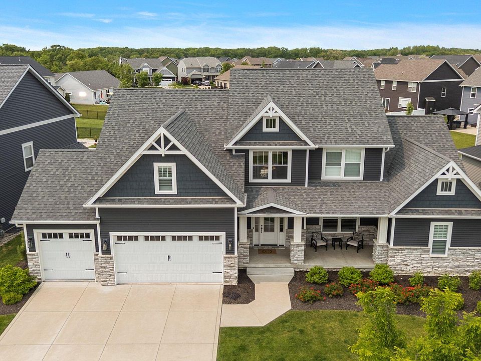 Incredible quality and very rare to find, this better than new construction home has everything you could think of to offer. This 1.5 story home features 5 bedrooms, 4.5 bathrooms, over 4300 finished square feet, MAIN FLOOR MASTER SUITE, IN-GROUND POOL, beautiful landscaping, a SECOND UPPER LEVEL MASTER SUITE, and an attached/finished 3 car garage, sitting directly ACROSS the street from 3 ACRES of open community grassland, which is great for every day recreation and activities.The main entrance foyer offers a two-story grand entrance with a beautiful wooden staircase and hardwood floors throughout. The main living room features vaulted ceilings, tons of natural light, and a fireplace with built in shelving. The eat-in kitchen offers white cabinetry with crown molding, quartz countertops, walk-in pantry, white farm house sink, and spacious island with wood finishes and an under mounted microwave. Off the kitchen is access to the formal dining room that features double glass doors. The MAIN FLOOR MASTER SUITE is extremely spacious with vaulted ceilings, walk-in closet, and a gorgeous custom master bathroom with double vanities, make-up space, and a huge zero-entry glass tiled shower.Off the kitchen to the backyard leads to the summer entertainers dream features a beautiful in-ground pool, paver patios with multiple sitting/fireplace spaces, covered gazebo siting space, tons of tree plantings for privacy, and a fenced in yard!The upper level offers a massive second level master suite with a trey ceiling, walk-in closet, and a private en-suite bathroom with double vanity sinks and a walk-in glassed tiled shower. There are two additional bedrooms upstairs and a full bathroom, also offering double vanity sinks. One of the bedrooms has a door for direct access to the bedroom.The FINISHED basement offers a huge living space, 5th bedroom, 3/4 custom bathroom, and a large storage area!
