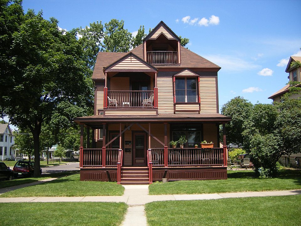Top two floors.3rd flr.Spacious Master suite w-whrpl tub bath,walk in closet & balcony.2nd flr.3 bdrms,liv.rm.w-frpl & balcony.dinning rm.3 bdrm.s and fullbath.Eat in kitchen w-stn. stl. appliances incl DW.Btfl woodwork & hrdwd flrs.Garage w-opener. heat&electric paid by tenant