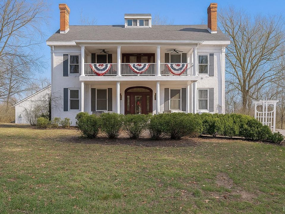 Robin Hill is awaiting it's new owners! Don't miss this rare opportunity to own an extraordinary piece of Southern Indiana's history that has been beautifully updated for modern living and perfectly situated on a picturesque 1-acre lot in Mount Vernon, IN. Originally built in 1836, this stunning plantation-style residence has been thoughtfully transformed while preserving its timeless architectural charm. From the moment you enter, you are greeted by a breathtaking oak staircase, rich hardwood flooring, and expansive windows that flood the home with natural light. The gourmet kitchen impresses with granite countertops, glazed hardwood cabinetry, stainless steel appliances, gas range with pot filler, and a dedicated wine cooler just perfect for both everyday living and entertaining. Offering 5 spacious bedrooms and 3.5 bathrooms, the home features an impressive primary suite complete with a luxurious bath showcasing double granite vanities, a whirlpool tub, and a separate tiled shower. With over 5,500 sq ft of living space and eight fireplaces, this home provides an abundance of room for gatherings or quiet moments with family. Additional interior highlights include a newer ceramic-tiled sunroom and a large formal dining room, which is currently being used as a second sitting room. The exterior is equally captivating, boasting a newer second-floor balcony and a beautifully designed outdoor entertainment area in the back complete with a pergola. A large driveway and detached 2-car garage offer ample parking for residents and guests. Robin Hill is a perfect blend of historical elegance and modern comfort, an iconic residence ready to welcome it's next chapter.