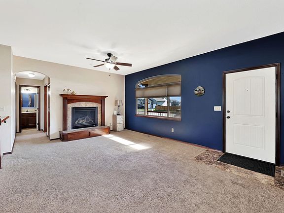 Ask Siri to find a ranch home in Goddard with five bedrooms, three bathrooms, a finished basement, and a fenced yard, and you'll get 917 N Oak Ridge. Located in the St. Andrews neighborhood near Tanganyika, Starbucks, and the new Genesis complex, this home has more than 2,800 sq. ft. of finished living area to enjoy. Place some rocking chairs on the covered front porch to enjoy the spring evenings. Inside is an open concept main floor that feels homey with warm toned cabinetry and a gas fireplace in the living room. The kitchen has room for a dining room table or additional seating at the island complete with cabinets for more storage in addition to the pantry. With a split-bedroom floor plan, the primary bedroom and ensuite is on one side of the main floor and overlooks the backyard. The bathroom includes a double-sink vanity, large jetted tub, and a separate shower. For convenience, the main-floor laundry room is only steps away and has direct access to the garage. The other side of the main floor has two more bedrooms -- one facing the front of the house and the other overlooking the backyard -- and a full bathroom with a tub/shower combo. The view-out basement provides almost as much finished living space as the main floor. With plenty of space for a sectional and big screen TV, this is a great hang out space. There are another two bedrooms in the basement and a full bathroom as well. The unfinished storage/mechanical area has built-in shelves to easily store and organize tubs for seasonal decor or off-season clothes. Out back is a yard with a full privacy fence and a shed in case there in case the three-car garage is full of vehicles. This home is in the Goddard school district boundaries -- Explorer Elementary, Discovery Intermediate, Eisenhower Middle & High Schools.