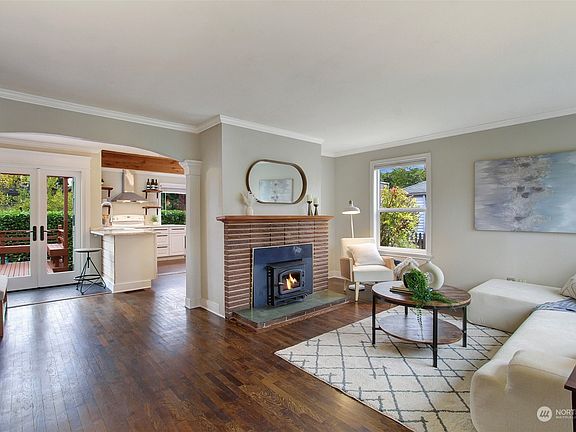 This beautifully updated Craftsman home exudes charm while incorporating modern features. The newly expanded kitchen showcases a popular farmhouse style, complete with marble counters, new cabinets and fixtures. Newly remodeled bathroom and hardwood floors run throughout the home, which boasts a light and bright living room with a cozy wood fireplace. A private backyard that offers a large deck and spacious yard, ideal for entertaining, relaxing and gardening. Additional amenities include an efficient heat pump and air conditioning for warm months and a detached garage. Nearby light rail access makes downtown commutes a breeze—and just minutes away from Northgate Kraken complex, shops and cafes.