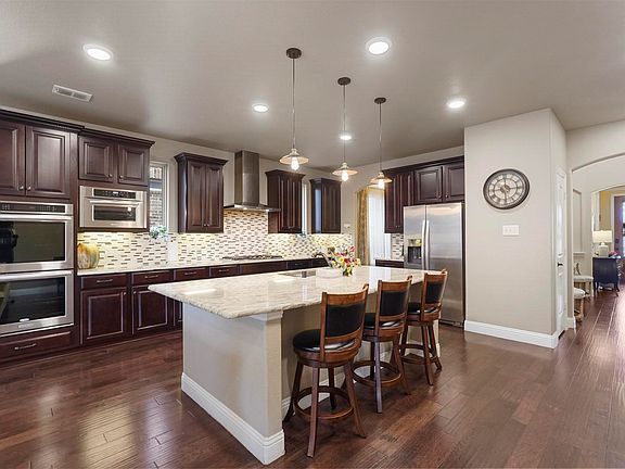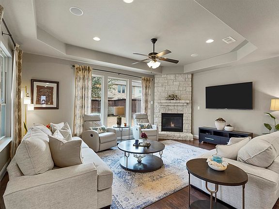 ***SPECIAL FINANCING AVAILABLE WITH 2-1 BUYDOWN*** With an accepted offer, seller and preferred lender will help buy down your interest rate for the first two years—making monthly payments more affordable! Stunning North-Facing Former Model Home in a Prime Location! Ideally situated near a community pool and clubhouse with a greenbelt view bursting with wildflowers in the spring and summer, this home is loaded with upgrades! Inside, enjoy tray ceilings, accent walls, and a striking stone fireplace. The chef’s kitchen boasts a huge island, gas cooktop, double ovens, and stylish backsplash. A wall of windows floods the open floor plan with natural light, overlooking the lush backyard, covered patio, and outdoor kitchen—perfect for entertaining! The luxurious primary suite features a spa-like ensuite with dual vanities, a soaking tub, and glass-framed shower. Within the primary suite there is a bonus room with a wooden accent wall- perfect space for a nursery, private gym, or sitting area. Downstairs, a home office with a stone accent wall adds style and function. Upstairs, enjoy a built-in workspace, extra living space, and a massive game or media room with a wet bar, mini fridge, and projector setup—all included! Additional highlights: paid-off solar panels with warranty, central speaker system in the living area, primary bedroom and game room, and solar exterior lighting. Located in Trinity Falls, enjoy resort-style amenities including pools, parks, trails, disc golf, and more. With easy access to Hwy 75, Downtown McKinney, shopping, and dining, this home is a must-see!