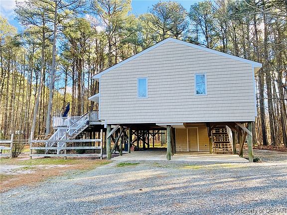 Wonderful OBX style home on 26 acres. 3 bedrooms 2 1/2 bathroom home with privacy and a great location. This home is in White Stone, close to Kilmarnock and Irvington. Open floor plan with an kitchen and great room. 2 bedrooms have a Jack and Jill bath on the opposite side of house from primary bedroom. Primary bedroom has an ensuite bathroom and office space adjacent. Great deck overlooking private yard. Chimney and Flue convey in "as is, where is" condition. Small shed on property will convey. Large shed will be removed.
