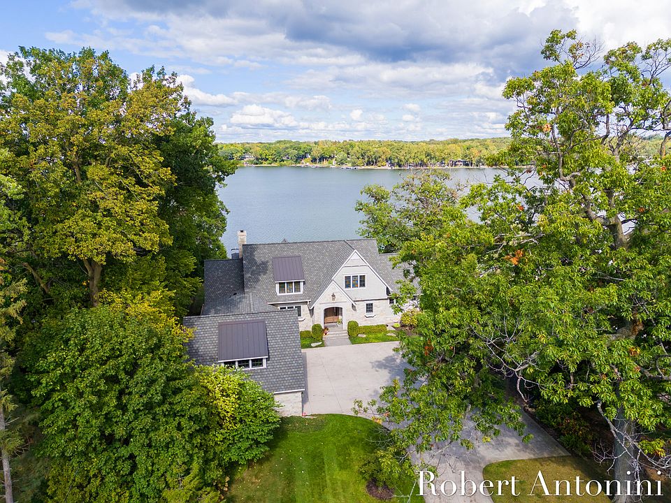 The backdrop is a view that captivates Reeds Lakes at its finest. The stately 4 stall, cedar shake and stone home was specifically designed with levels of windows to boast panoramic views from any angle capturing the essence of lake living. J. Visser Design, Tru Kitchens & BDR Custom Homes teamed up to create this classic design with a modern twist. This 'timeless' residence exemplifies true luxury constructed with the highest quality materials and craftmanship. From the conversation piece lighting to the travertine fireplace, floating cabinets, wood flooring, and many other classic elements exemplify exceptional fit and finishes. Meticulous is an understatement as the Owners have diligently maintained this home in 'like new' style and fashion. Specifically designed to see the lake from the spacious open floor plan including a high-end custom gourmet kitchen with an oversized island, a great room complete w/fireplace, three-season room w/fireplace, office tucked in surrounded by garden and lake views & the primary main floor suite hosting an oversized private bath and an expansive walk-in closet, and a private covered coffee/wine deck. Entering off the garage you will find a large closet, lockers, and spacious well designed laundry area. The upper level contains three additional bedrooms, one of which is an ensuite, along with a Jack and Jill bathroom, second laundry, and a lounging/gaming/study area. The lower-level walkout is an active space with a kitchenette, game room, home gym, changing room, & loads of storage. The outdoor patio space is spectacular for grilling, lounging & living! Additionally, the estate offers a whole home Generac system. Adjacent to the water, you will find a matching boathouse designed for the storage of watercraft and additional items with a rooftop deck offering unobstructed Reeds Lake views. We invite you to contact us today to begin your journey 'On the Lake'.
