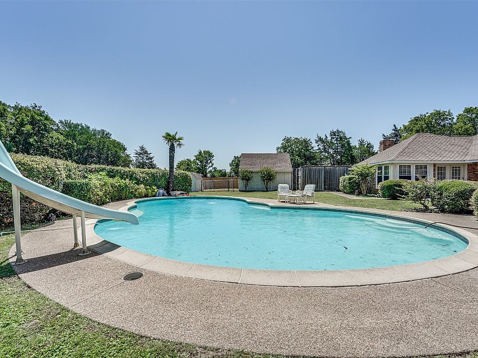 Stunning custom home on 1.69 acres with a circular driveway, ample parking, and beautiful mature trees. This spacious residence boasts a grand entrance, a large sunken living room, and two additional living areas. The den features a built-in desk, fireplace hutch, and more. The family room includes a bar, perfect for entertaining, and there is a formal dining area. The gorgeous kitchen features a knotted pine breakfast room. The bdrms are split, with the primary bedroom offering a huge walk-in closet, built-in safe, separate shower, and jetted tub. The 3rd and 4th bdrm are separated by a Jack and Jill bathroom. Throughout the home, you'll find plenty of built-ins and custom designs, adding to its spectacular appeal. Enjoy the sunroom with a skylight and other features. The backyard is a true oasis with an inground pool, slide, wildflower garden, sitting area, and more. Additionally, this home is equipped with numerous smart features. Designed with convenience and accessibility in mind