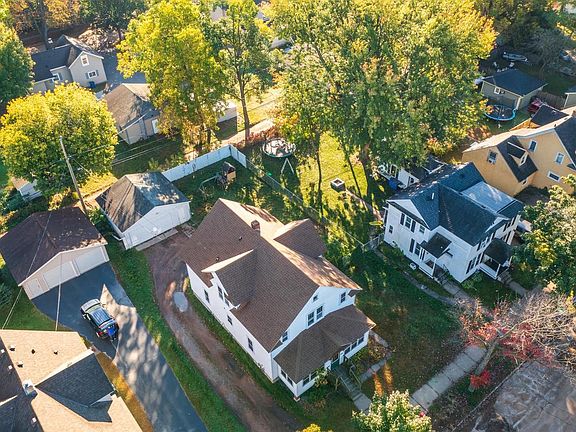 Charming and full of character, this spacious 2-story home on Wausau?s west side offers over 2,200 sq ft of finished living space with historic charm throughout. From the welcoming enclosed front porch to the fenced backyard and patio area, the exterior provides great curb appeal along with a detached 2-car garage and ample parking. Inside, you'll find a generous main-level living room showcasing original hardwood floors, tall ceilings, and beautiful woodwork that adds warmth and character. The kitchen offers plenty of cabinet storage and room to work, and a full main floor bathroom with a tub/shower completes the main level. Upstairs features four additional bedrooms, another full bathroom, and an additional loft-style living area. One of the bedrooms includes a built-in sink and cabinet setup?ideal for a potential kitchenette, craft space, or hobby room. Hardwood flooring continues through the upper level, maintaining a cohesive historic feel. The lower level is unfinished but offers excellent storage options, good ceiling height, laundry space, an updated 100 AMP electrical pane