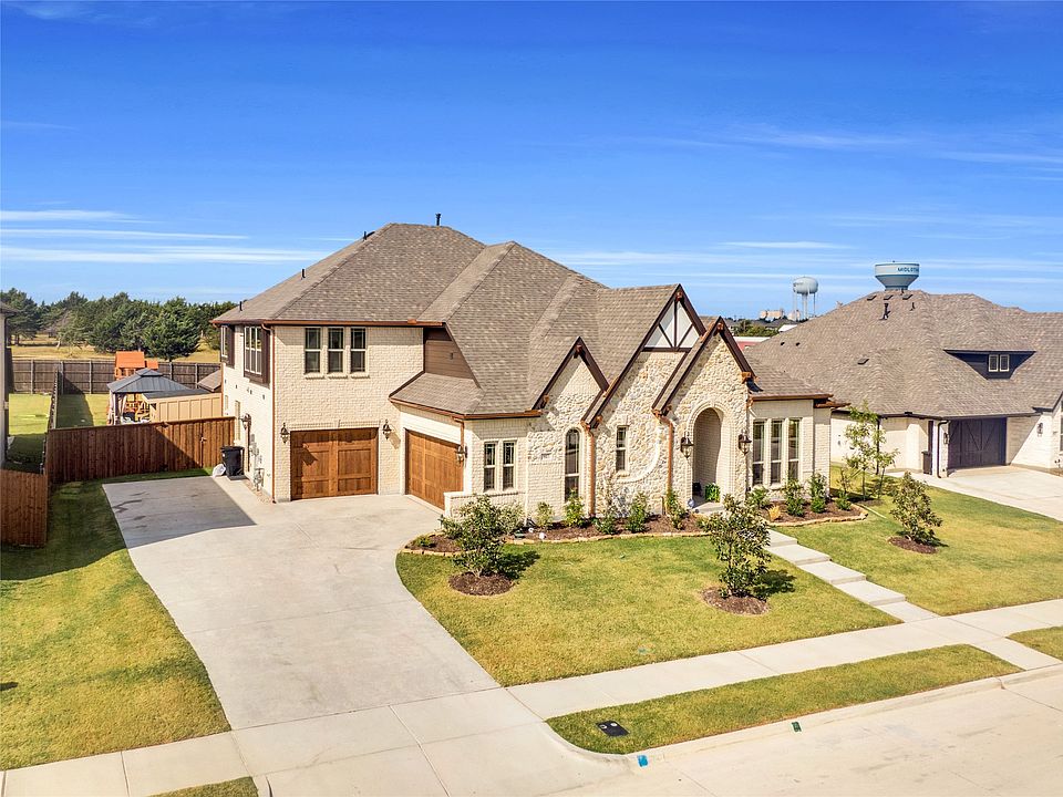 New home built and completed June of 2025. Seller offering 20,000 seller toward buyer at closing. This is a custom builders' personal home. Upgrades galore. Natural lighting kitchen and dining areas due to larger windows. Built-ins throughout offer storage and elegance throughout this spacious floorplan. 2-story layout offering 5 bedrooms, 3.5 baths, and a 3-car garage. Set on a large sized homesite, this home offers enhanced curb appeal with cedar garage doors, copper color gutters, a custom brick and stone exterior, and covered pavilion with playset in backyard, Custom front door unit, hand scraped wood floors throughout all of the first floor excluding tile bathroom floors. Kitchen features quartz countertops, farmhouse sink, pot filler, gas cooktop, oven, microwave, and designer backsplash. Builder added natural gas stub for future outdoor kitchen on back porch. Accent colors throughout are thought out to perfection. Upstairs you'll find spacious secondary bedroom, and additional bath, a complete media room with surround sound pre-wired. Theater seating will stay with home sale. Other highlights include a mud bench A utility room with upper cabinets that are connected with primary bath bedroom, and a tankless gas water heater for energy efficient living. Backyard had plenty of room for future pool. Park and sports fields are within short walking distance . Don't miss out on this truly custom built home.