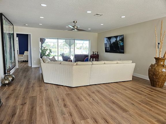 This home offers comfortable options with its open floor plan with sliders opening to your outdoor patio and enclosed pool. The inviting designer interior is just over 1,900 square feet of quiet enjoyment or for your grand entertaining. Light and bright Living area that expands across the house with a split Living plan that accommodates an optional formal living room and formal dining off the kitchen. The stylish kitchen is perfect for the chef in the family including rich slab granite and designer tile backsplash with a large kitchen Island for casual dining or breakfast bar all overlooking the 2nd living room perfect for entertaining!
