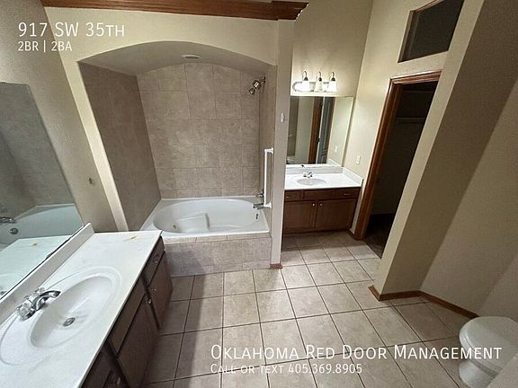 Discover this inviting 2-bedroom, 2-bathroom home featuring thoughtful details and a modern layout. The master bathroom boasts a relaxing whirlpool tub, perfect for unwinding after a long day. The kitchen is a chef's delight with a spacious island, breakfast bar, stove, and built-in microwave, making meal prep and entertaining a breeze. A dedicated laundry room adds convenience, while the flooring throughout combines the cozy feel of carpet with the sleek durability of tile for a balanced and stylish touch. The 2-car garage provides ample storage and parking space, adding practicality to this charming home. This home is ideal for those seeking comfort and functionality. Schedule your tour today to see all it has to offer! Applicant Requirements include but not limited to: Your income needs to be 2.5x rent amount monthly No History of Evictions in past 5 years No Felonies going back 7 years Credit pulled for verification of the above Absolutely no smoking in home or on premises *Oklahoma Red Door Management enterprises use a platform called PetScreening to complete the screening and approval process for any pets that will be living at the property. Individuals without pets must complete the online affidavit, while Pet/Animal Owners should gather current vaccination records, veterinarian information, and snapshots of their pet/animal. You will find the link to complete your online profile in the application process. Household pets will be charged a fee of $25 per pet which will not only complete the screening process but create a digital passport for your animal for your personal use." (THIS IS NOT THE INITIAL OR MONTHLY PET FEE - THESE FEES ARE STRICTLY FOR YOUR PET SCREENING & APPROVAL PROCESS - CALL THE OFFICE FOR INITIAL AND MONTHLY PET FEES). Pets Accepted (Up to 2) on a case by case basis once approved and payment of applicable fees. $300 non-refundable pet fee per pet, $25 month per pet. Additional charges may apply, including a $75/per adult application fee, and $99 one time lease administration fee. Residents are responsible for yard care and utilities (where applicable). Resident Benefits Package (Build-to-suit): The $49.95 fee includes renters insurance (required), air filter delivery sent quarterly, a move-in concierge service to make setting up your utilities and home services easier, $1M identity protection, a top-tier resident rewards program, and credit building with on-time rent Ad-on to package: on-demand pest control for $12.00/month. * Brokers make an effort to deliver accurate information, but prospective applicant(s)/tenant(s) should independently verify information on which they will rely in a transaction. All properties are subject to prior lease closing, change, or withdrawal. Neither ORDM nor any listing broker shall be responsible for any typographical errors, misinformation, or misprints, and they shall be held totally harmless from any damages arising from reliance upon this data. This data is provided exclusively for consumers' personal, non-commercial use and may not be used for any purpose other than to identify prospective properties they may be interested in leasing. Carpet Central Air Ceramic Tile Garage Garage Door Opener Laundry Hook Ups Stove Walk In Closets