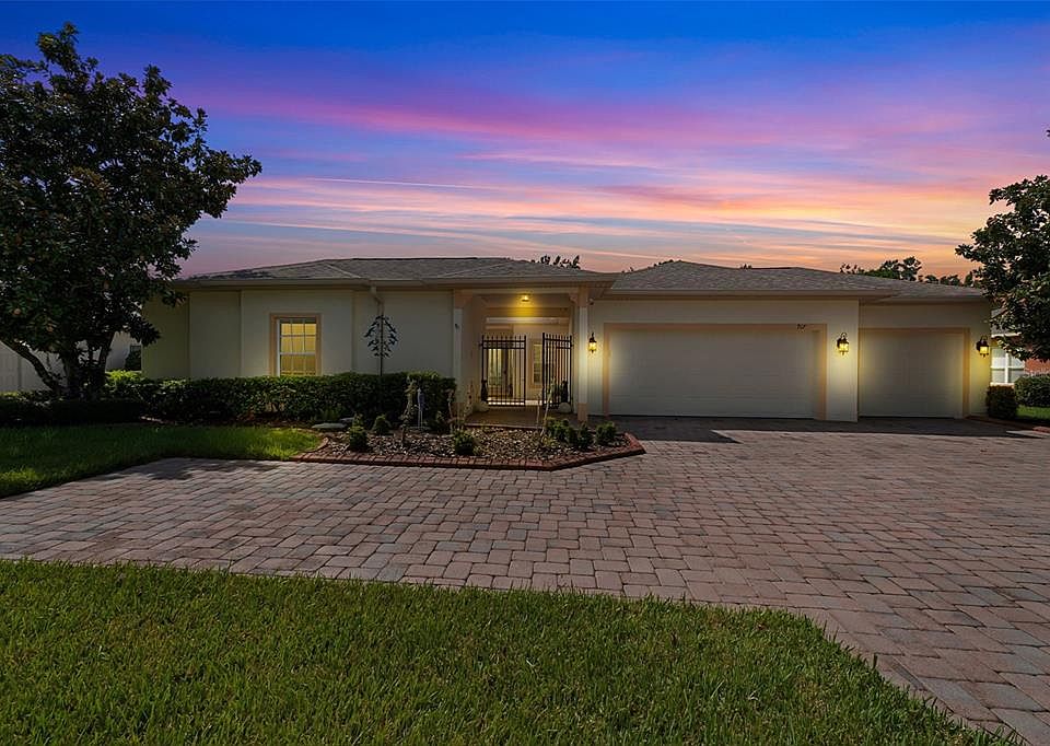 BRAND NEW PHOTOS FOR BRAND NEW UPGRADES! These new water-resistant Laminate floors have transformed this home to truly show like a model! This home is located on one of the most private and spacious lots in the premier gated 55+ community, Solivita, a Community which was designed for active, inspired living. This stunning BOLERO model sits on nearly 1/3 acre with panoramic conservation views and offers the perfect blend of privacy, space, and style. Featuring 3 bedrooms (including a private Casita), 3 full bathrooms, and an oversized 3-car garage with over (20) feet of built-in storage. This home was designed with comfort and entertaining in mind. An extremely large brick-paver driveway accommodates 8+ cars, perfect for welcoming guests including a private parking spot right next to the Casita. The entry gates lead into the large paver courtyard which permits access both the Main House and Casita. The Main House has a bright, open floor plan with new LVP flooring throughout and two 9' - 3-panel sliding glass doors that frame the lanai and serene conservation views. The spacious kitchen, one of the largest layouts in Solivita, boasts brand-new stainless-steel appliances (2025), generous counter space, and a seamless connection to the dining, living and den areas. The Casita features a large, bright open space, with a walk-in closet, linen closet and large full bathroom. There is easy private access to the Casita from the French-door located in the front courtyard. The oversized brick-paver lanai with custom vinyl windows can be easily opened to enjoy Florida's breezes or closed for year-round comfort. Surrounded by mature landscaping and nature, your backyard is a private oasis. The Owner's Suite offers a sitting area, two walk-in closets with custom California type shelving, and a spa-like bath with dual vanities, a soaking tub, and a separate shower. The Casita serves as one of the three bedrooms, complete with its own entrance and full bath, large walk-in in closet, linen closet all ideal for guests, hobbies, or a home office. Additional highlights: Luxury 3-car garage with custom shelving, workspace, and water treatment/reverse osmosis system. Secondary bedroom with private bath. Laundry room conveniently located near the garage entry. Enjoy Solivita's unmatched lifestyle amenities: 14 heated pools plus indoor pool and walking track, Fitness centers, pickleball, tennis, and golf. 250+ clubs, on-site dining, and social eventsLocated just 30 minutes from Disney and Orlando's top attractions, and minutes from the new Poinciana Lakes Plaza with shopping, dining, and multiple services. Experience the perfect mix of privacy, space, and resort-style living. Schedule your private showing today!
