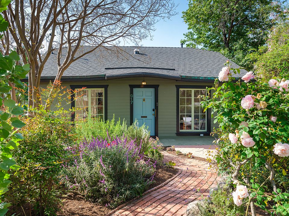 Charming 1920's Bungalow nestled amongst other character homes. Storybook front yard features an idyllic winding brick pathway leading to an open front patio with privacy walls creating a tranquil ambiance for relaxing and enjoying the lush garden and surrounding foliage. Enter into a spacious light and bright living area with decorative Batchelder fireplace, hardwood floors, floor-to-ceiling French windows and built-in bookshelves. Central kitchen highlighted by generous storage, ample counter space and convenient access to laundry room. Downstairs is complete with three bedrooms and two bathrooms, including a spacious master suite and spa-like bath. Upstairs offers an enchanting loft style bedroom with vaulted ceiling, dual balconies and treetop views. Entertainment friendly backyard boasts large open patio, detached converted garage, significant storage shed and plenty of space for gardening with potential grass area. Conveniently located close to award winning South Pasadena High School, restaurants and more. Loaded with pride of ownership.