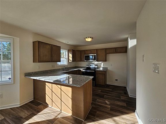 Like new, 4 bedroom home ready now! Brand new cabinets and granite countertops, new appliances, carpet and vinyl. Formal dining room with bay window and chandelier, cozy kitchen opens to a large great room with gas fireplace. Breakfast nook with bay window. 4 roomy bedrooms on second floor. Primary Bath has garden tub and separate shower. Bright and sunny backyard with 10x16 deck. Concrete driveway, cul-de-sac street.