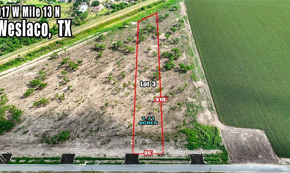 Quiet Ranchette large lot, all utilities included ready to build your dream home. No City Taxes, No HOA, paved road, conveniently located between Westgate Dr. and FM 88 on Mile 13 North. New 1,500 squared feet minimum living area on concrete foundation required. Out of FEMA flood areas. Schedule your showing today. Larger lots available at different prices.