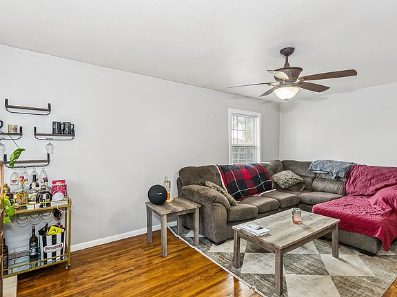 This charming, well-maintained home is move-in ready with updates throughout! Fresh interior paint, refinished hardwood floors, newer water heater, and a newly installed electrical panel give the home a clean, updated feel. The spacious kitchen features white cabinetry, double ovens, a glass cooktop, and a large walk-in pantry for excellent storage. Hardwood floors run through the living areas and bedrooms, with luxury vinyl in the kitchen/dining space. All three bedrooms offer generous space and great closet storage. The updated bathroom includes a modern vanity and a tiled shower. Outside, you’ll love the oversized backyard with mature trees, a covered porch with ceiling fan, and an outbuilding with electricity—perfect for storage, hobbies, or projects. With its updates, space, and convenient layout, this home offers outstanding value.