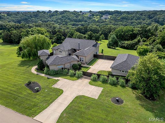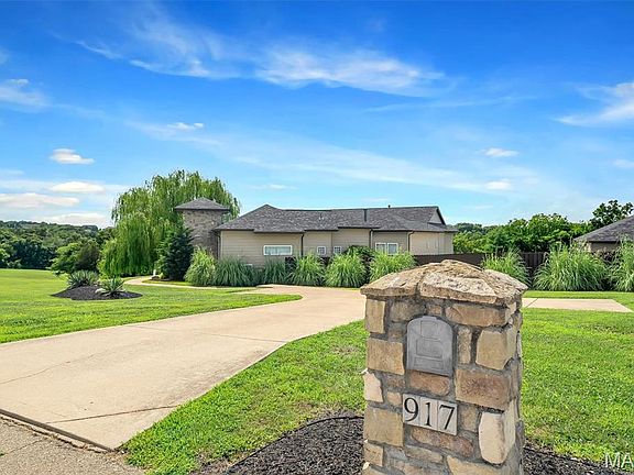 Step into a lifestyle of elegance at 917 Wellington Ridge. This extraordinary custom estate on nearly 3 pristine acres in Festus offers over 4,200 sq ft of sophisticated living, designed for those who expect the very best. Inside, a stunning two-sided fireplace creates a dramatic centerpiece between the living and dining areas, while the chef’s kitchen delivers a true culinary experience with 30+ feet of granite, built-in professional appliances, and a wall of windows bathing the space in natural light. The primary suite is nothing short of a retreat—complete with a spa-inspired bath, soaking tub, walk-in tile shower, and a wardrobe-sized closet. Resort-style amenities continue outside with a covered patio and fireplace, in-ground pool, and a fully appointed pool house perfect for guests or extended stays. The finished lower level elevates entertainment with a private theater, sauna room that could be an additional bedroom, and game lounge. Opportunities to own a property of this caliber are rare—don’t miss your chance. The additional 2.91 acre lot next door could also be yours to make this a truly private, serene retreat. Schedule your private tour today and make 917 Wellington Ridge your next address! Information pulled from various sources. Buyer to verify all MLS data.