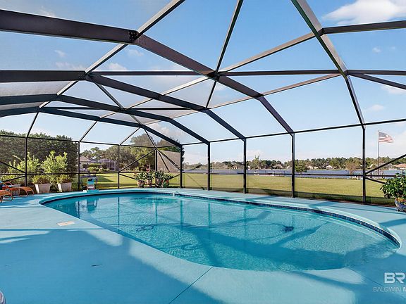 Overlooking Lake Muriel in the Glenlakes Golf Community, this unique and amazing home offers everything you are looking for. Saltwater pool with new liner - lanai and screened breezeway from house to pool. Inside is a heated and cooled sun room, gas fireplace, split bedrooms – 3 bedrooms and 2.5 baths, huge kitchen with storage galore, tankless water heater, Generac generator, hurricane panels, fortified roof and so much more – must see to appreciate. Home was re-plumbed in 2019 - new windows in 2014 Glenlakes is close to the Beach Express which allows quick access to the Gulf beaches. Easy drive to Mobile or Pensacola airports. Local places of interest includes Publix , restaurants, OWA Entertainment complex and Graham Creek Preserve Nature park. Buyer to verify all information during due diligence.