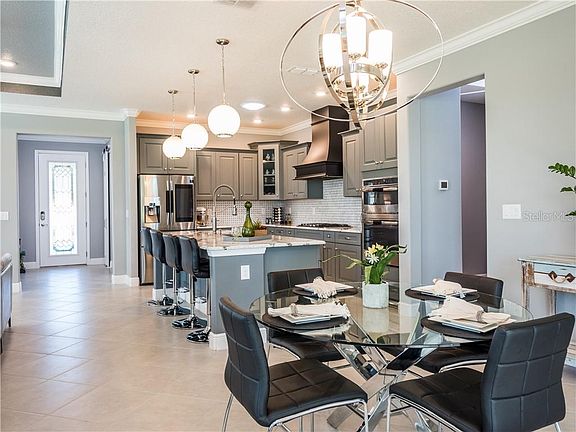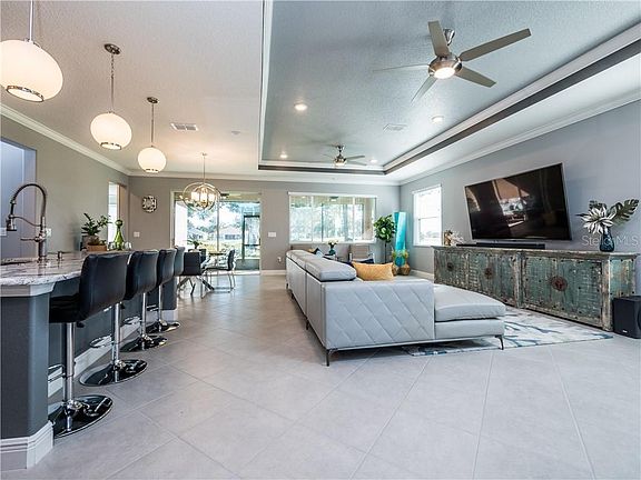 This stunning Ariana model is only 18 months old and faces 2 golf holes and an open area. Virtually every element of the home was upgraded with very tasteful colors, tile, lighting and fans, cabinets, appliances, counters, faucets etc. Please see attached upgrade document for details. The first impression is dramatic with the stone elevation, paver driveway and views of the golf course. Once inside, you enter the stunning great room and kitchen. The kitchen is a chef's delight featuring: gourmet stainless steel appliances, gorgeous quartz counters, country kitchen sink, elegant staggered kitchen cabinets with crown molding, glass tile back splash, under counter lighting, fancy pendant lights and a magnificent gracefully swooping exhaust hood. The great room is topped by a tray ceiling, 2 chrome fans and recessed lighting. Of course, a house like this would look half-dressed without crown molding and tall baseboards throughout. The bathrooms are tricked out with quartz counters, upgraded faucets and shower fixtures and upgraded cabinets. The flooring is level 2 tile, except in the bedrooms, which are upgraded carpet and very thick pad. The master closet has been optimized with built-in shelves and rods. The laundry room has a sink, cabinets and counters for folding laundry. The garage has and epoxy floor, sink, water softener and water filter. The east facing lanai has upgraded fancy fans and a serene view of the golf course. A perfect place to entertain guests or enjoy some afternoon refreshments. What we the owners love about our house. We love the privacy; we cannot see an adjacent house from any room. We have golf views of the 16th green and 17th tee from most windows. We are centrally located; it is a short golf cart ride to many amenities and two shopping centers. The water filter makes water that tastes like bottled water. It removes calcium and all organic chemicals and does not use salt. The kitchen is a dream to cook in and beautiful to work in.