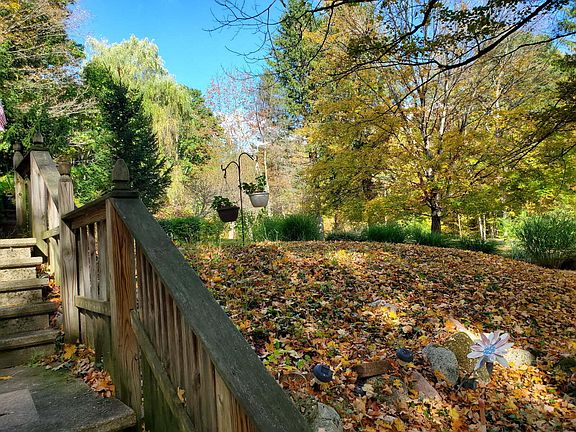 Large front yardFruit treesMechanical roomMature hardwoodsOff street parkingTons of storage spaceRolling hills
