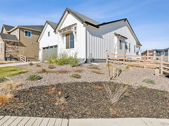 GORGEOUS single-family, ranch-style home! Your future home sits on a corner lot and offers 4 Bedrooms. You'll love the spacious, bright open layout with beautiful wide plank flooring throughout! The open flow between the eat-in Kitchen, dining area, and Living Room are ideal for entertaining. The Kitchen features Quartz countertops, decorative tile backsplash, stainless-steel appliances with gas range, farm style sink, and large center island with seating x4. Relax in front of the cozy stacked-stone fireplace! The Primary Suite has a private bath with dual sinks and a custom walk-in closet. The additional bedrooms share a 5-piece hallway bath. Fenced back yard is a blank canvas, ready for your personal touch! Additional amenities include a Community Pool and Clubhouse, as well as a Neighborhood Coffee Shop and Tap House. ***Seller is offering a $10,000 concession to finish landscaping in the backyard!*** Make this home yours - today!