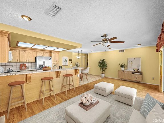 With four comfortable bedrooms, Main Bedroom and en suite Main bath are equiped with disability features. The two upgraded bathrooms all on the main floor, inside laundry, 2 Car Attahed direct access garage with pull down stairs to overhead extra storage area, Central FAU and AC, this home is both stylish, comfortable, private and functional. Enjoy tasteful tile and wood flooring, dual-pane upgraded windows, French sliding doors, mirrored closet doors, and built-in security wiring. Nice, clean and move in condition. Conveniently located near shopping, restaurants, and major freeways, this home offers the perfect blend of comfort, convenience, and suburban charm.