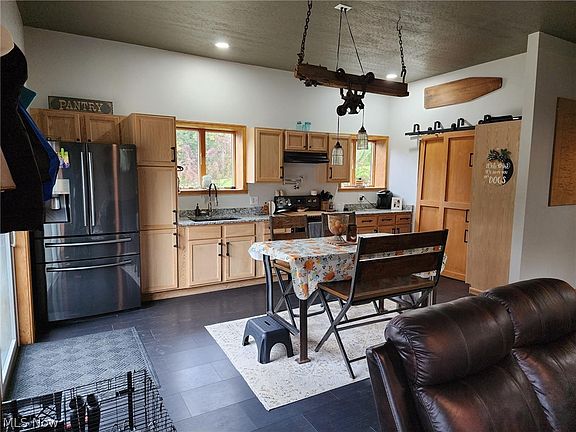 5 acres out of town. Unique 4 bedrooms with 2 bathrooms. Open kitchen living area. 2020 new paint, carpet in bedrooms and ultra violet light water system. New in 2021 kitchen cabinets, floor, laundry room barn door, wood beam in living room and propane tank.
