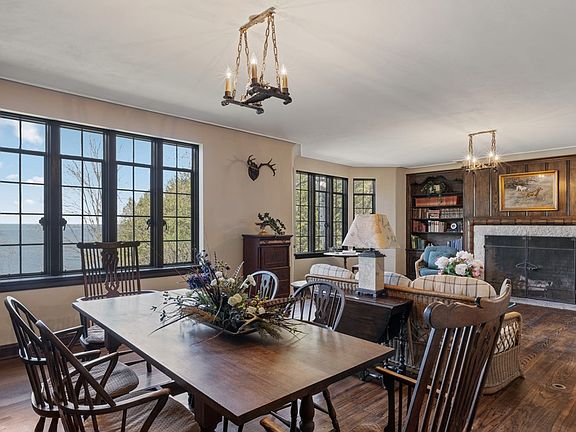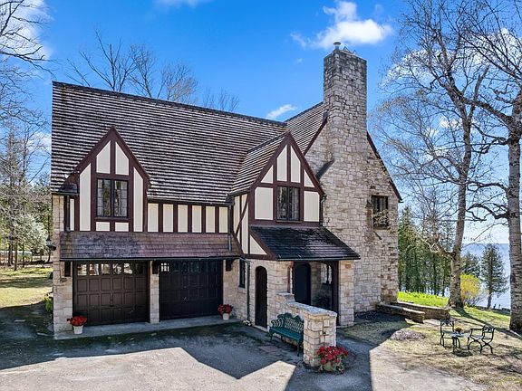 Return to the early summers in Door County with a prestigious 1929 Cottage Row home and 273' of prime waterfront. This stunning Tudor Revival designed by Edwin Hill Clark and centered within an original Jens Jenson landscaping, this home was ahead of its time in design and amenities. Walk into history through hand carved arched doorways anchored with limestone and stucco. The generous living area shows hand carved built in bookcases, stunning leaded glass casement windows and a hidden door to the butlers pantry. Further along, a screened in veranda overlooks the yard and shore. Only two owners since 1929, this rare historic home is exceptional. Being sold as-is.