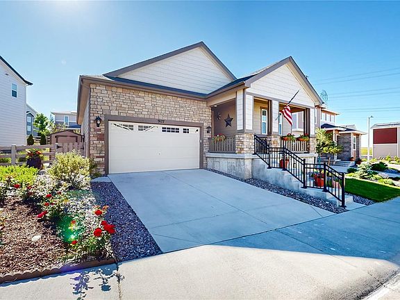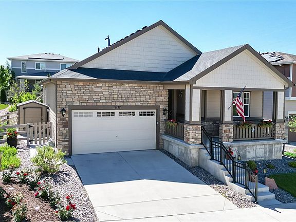 Welcome to your Colorado dream home in the coveted Sterling Ranch community! This stunning single-story ranch, built in 2020, offers modern luxury and natural beauty all on one level. Enjoy the charming rose garden and covered front porch as you are welcomed to your new home. ~ Inside, an open-concept layout seamlessly blends style and function. The gourmet kitchen boasts a showstopping quartz island and extended cabinetry for effortless entertaining. It flows into a spacious family room, creating an ideal space for daily living and festive gatherings. Expansive sliding glass doors invite the outdoors in, leading to your covered patio that's an extension of your living space. Here, amidst thoughtfully curated zero maintenance landscaping, you'll spend countless evenings basking in Colorado's legendary climate. The property also features a convenient storage shed, which is a rare find in Sterling Ranch. ~ A cozy office nook off the family room offers the perfect work-from-home solution. Retreat to your tranquil primary bedroom, a true sanctuary with an expansive walk-in closet. The single-story design means easy accessibility for all, making this an ideal forever home or downsizer's paradise. ~ Sterling Ranch is an outdoor enthusiast's haven with miles of trails winding through pristine open spaces. Whether it's a morning jog, family bike ride, or nature walk, adventure is just outside. World-class mountain recreation is a scenic drive away, yet both downtown Denver and the Denver Tech Center are within easy commuting distance. ~ This isn't just a house; it's your gateway to the Colorado lifestyle that is ready for you to move into today!