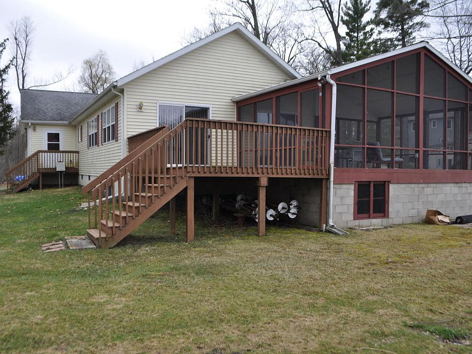 Sun and Fun awaits you on 530 Acre All Sports Wall Lake. Only 10yrs old 1920sqft home with Open Concept. Features 3 bedrooms, 2 baths and vaulted ceilings on 150ft of water frontage. Home is located at the very end of Lakeview Dr. Constructed as a Summer Home its lite and airy with lots of windows and a screened in porch. Kitchen has beautiful hickory cabinets with lots of storage space. (2) 24*40 Pole Barns on the property for all your toy storage. Home has 40inch crawl space that is easil y accessible and appears dry. Woodstove and enough wood split to last awhile. 10 sections of aluminum dock, paddle wheel pontoon boat, fishing boat and lifts remain. Check this one out!