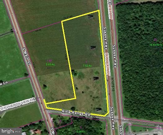 Prime location! 7.52 acres WITH BILLBOARDS between US 13 and DE 404, hundreds of feet of frontage on US 13, 13A, and Rifle Range Road. Excellent visibility and access to high volume beach bound traffic. Ideally positioned between Heritage shores and Bridgeville town center. Town of Bridgeville C-1 commercial zoning. City water and sewer are available. Four double-sided modern billboards INCLUDED. Billboard income approximately $32,000 per year.