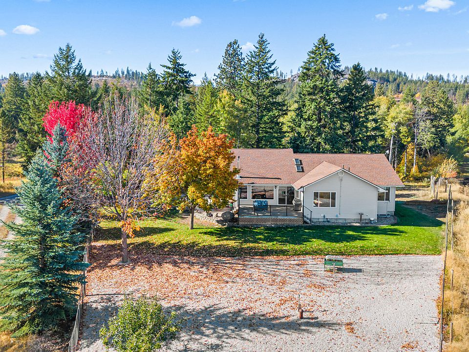 This stunning 4 bedroom, 3 bath custom home offers breathtaking mountain views as it sits on nearly 7 acres. As you enter, you're greeted by an open-concept layout that beautifully integrates the living, dining and kitchen areas. Workout room full of equipment, double sinks, wood stove up and downstairs, new deck, 1.5 acres surrounding home fenced. 2 wells, sprinkler system, pear and walnut trees.