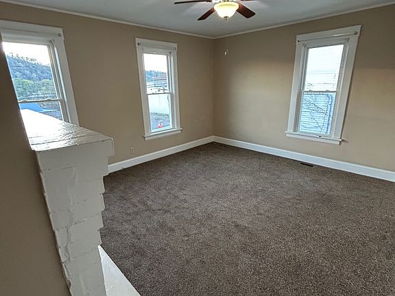 10 minutes to Wheeling or south to Moundsville. This lofty spacious apartment with high ceilings and easy to maintain flooring boasts 2 vintage decorative fireplaces and ceiling fans in every room, 2 private decks, one upper and one lower give you plenty of outdoor area to entertain or just enjoy a morning coffee with a view, situated on the shady side of this intimate complex also has its advantages as well. The space below this upper apartment will not be inhabited which gives you even more privacy. You have a nice private small back yard to enjoy grilling out, laying out or just hanging out with friends. Lawn care is provided at no cost to you, conveniently located very close to EMS/Fire and rescue, a grade school, a bank and the post office just 1 block away. This is a well established family neighborhood, apt is on the bus line as well, NO rental vouchers accepted, and NO PETS of ANY KIND permitted, please do not ask. no utilities included. For an apt to tour it, call seven-four-zero-two-nine-six-one-eight-eight-four or reach out by email through this platform. The property manager will be sure to return your call.