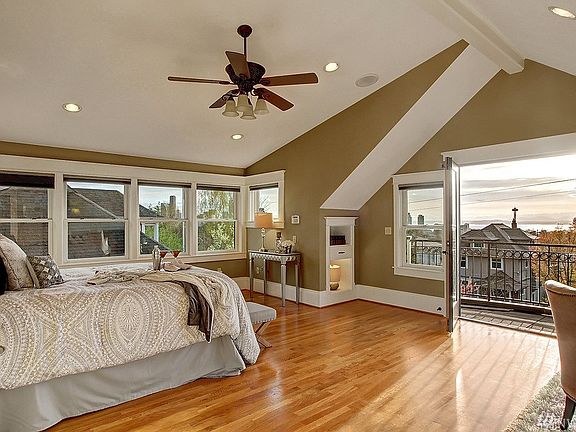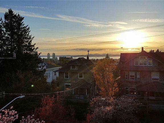 Enjoy classic architecture, modern updates & stunning City & Sound views in prime N. Capitol Hill. Covered front porch w/ bench & sunny patio for entertaining. Ribbon inlay floors, tiled FP, pocket doors, den. Beautiful granite topped kitchen opens to large dining and flat yard/patio/court for easy in-out play. Spacious bedrooms. Master floor suite: gas FP, balcony, luxury bath, walk-in. Lower: Family/media, MIL. Ideal for walks to Volunteer Park, restaurants, cafes,schools. Minutes to 520, I-5.